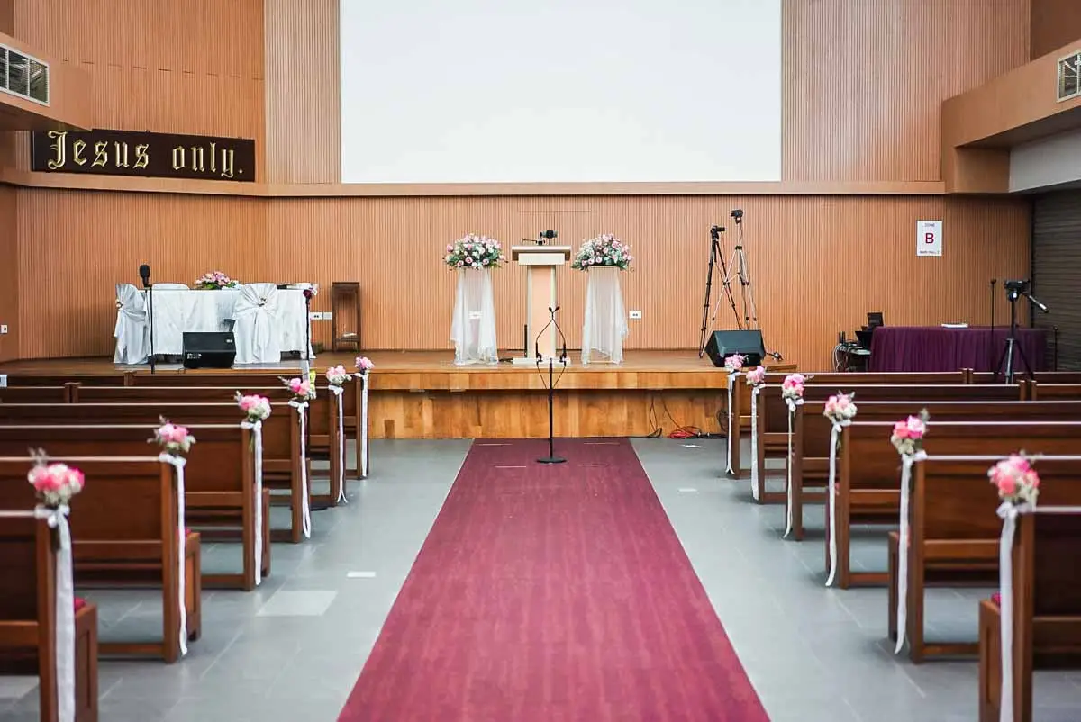 Stunning Pink and Rustic Church Wedding Decor at Ang Mo Kio Gospel Hall: A Perfect Blend of Elegance and Charm
