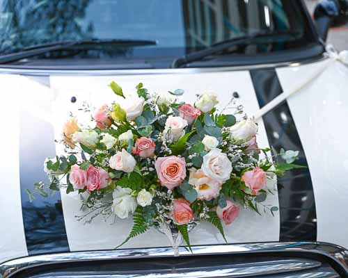 To choose your colour theme and design, check out our new styling trends for wedding car decoration with fresh flower for your wedding actual day or pre-wedding photography.