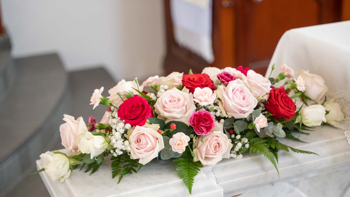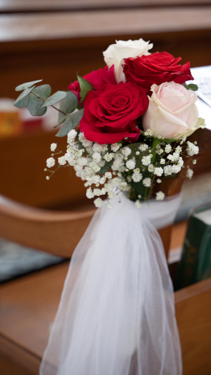We recently had the pleasure of decorating a stunning church wedding at the Church of Saints Peter & Paul. This event was organized by 5 Stones Florist. The wedding featured a vibrant color scheme of bright red, pastel pink, and white, creating a beautiful and festive atmosphere.