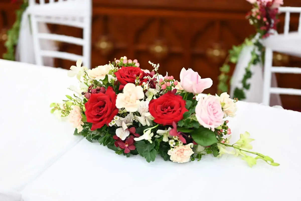 5 Stones Florist had the honor of decorating a beautiful wedding at Glory Presbyterian Church, . The wedding’s color scheme was a stunning combination of white, pink and red, creating a modern love story.