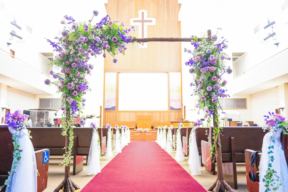 Elegant Purple and Lilac Wedding Decorations at Newton Life Church: A Stunning Floral Experience