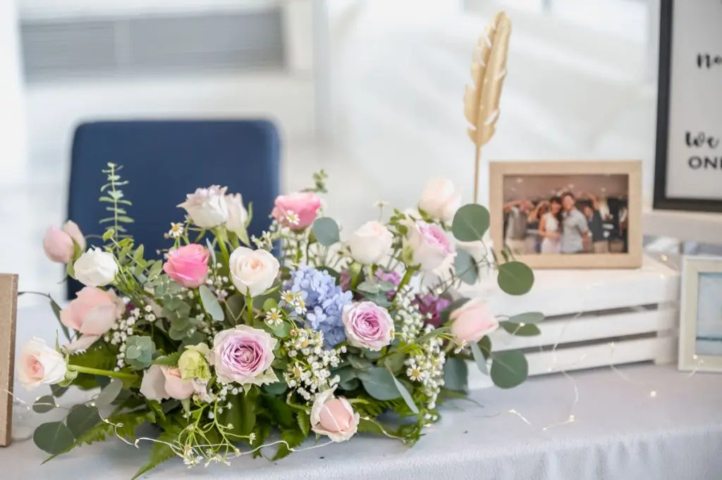We replaced standard hotel centerpieces with our custom fresh flowers, ensuring every corner echoed the chosen palette.